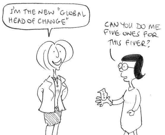 I'm the new "Global Head of Change". Can you do me five ones for this fiver?